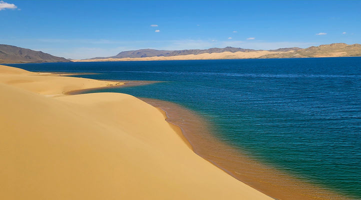 Khar Nuur Lake, surrounded by pristine wilderness and dramatic mountain-desert scenery. We will enjoy the beautiful view with Khar nuur lake we can swim or hike around and enjoy a tranquil evening under the stars, perfect for stargazing.